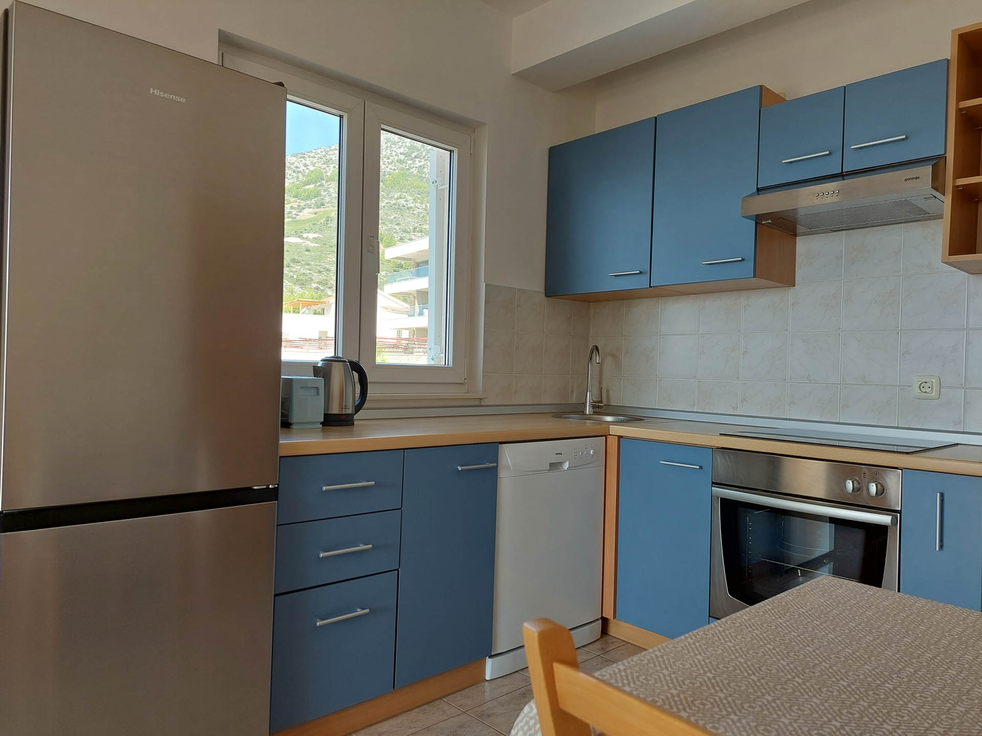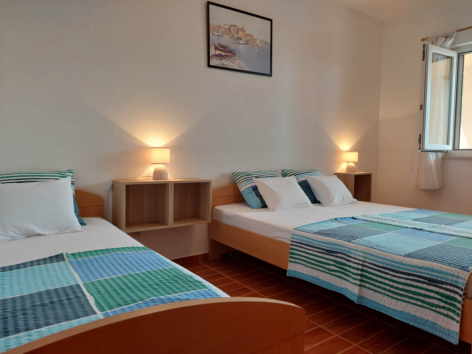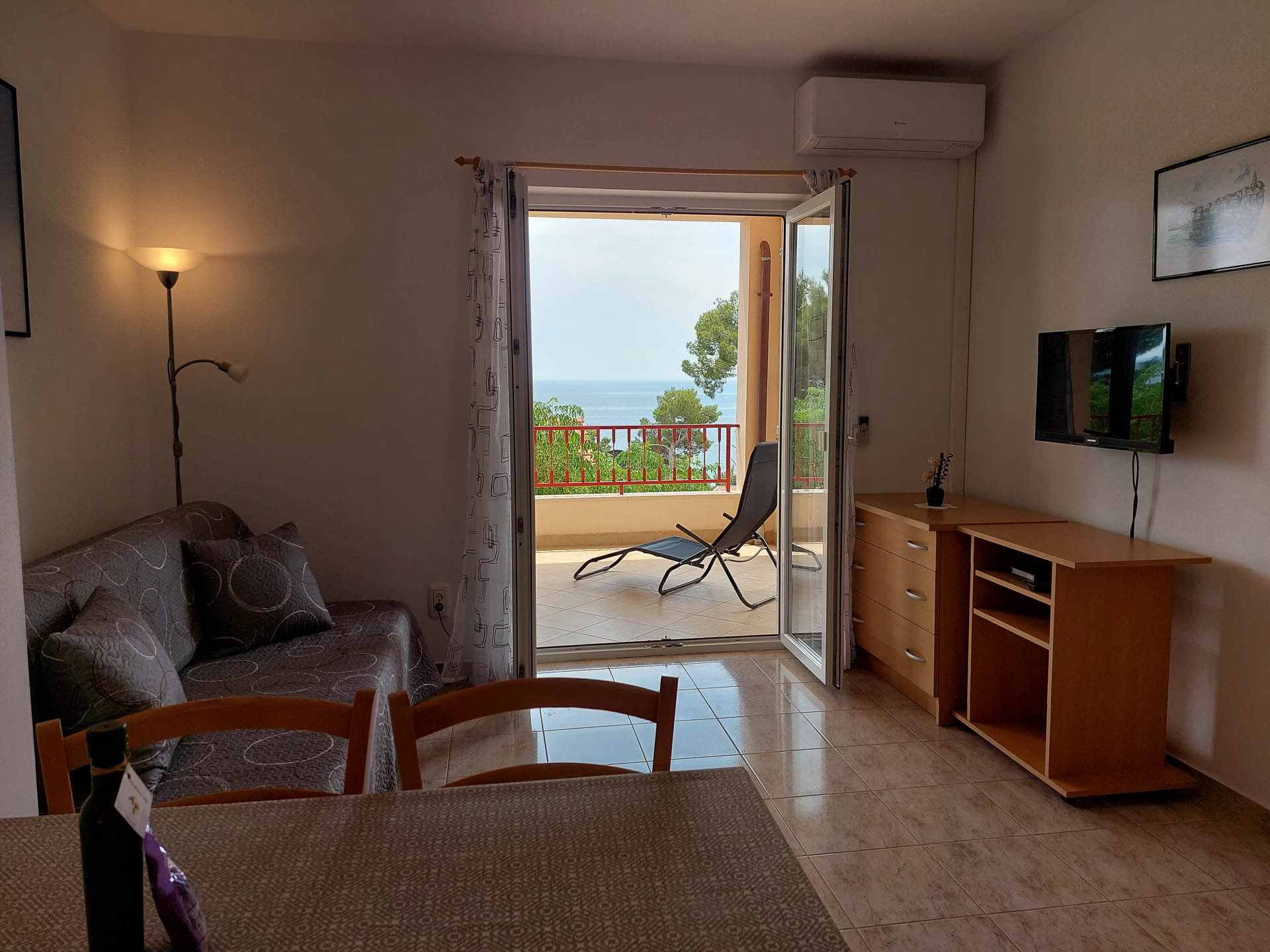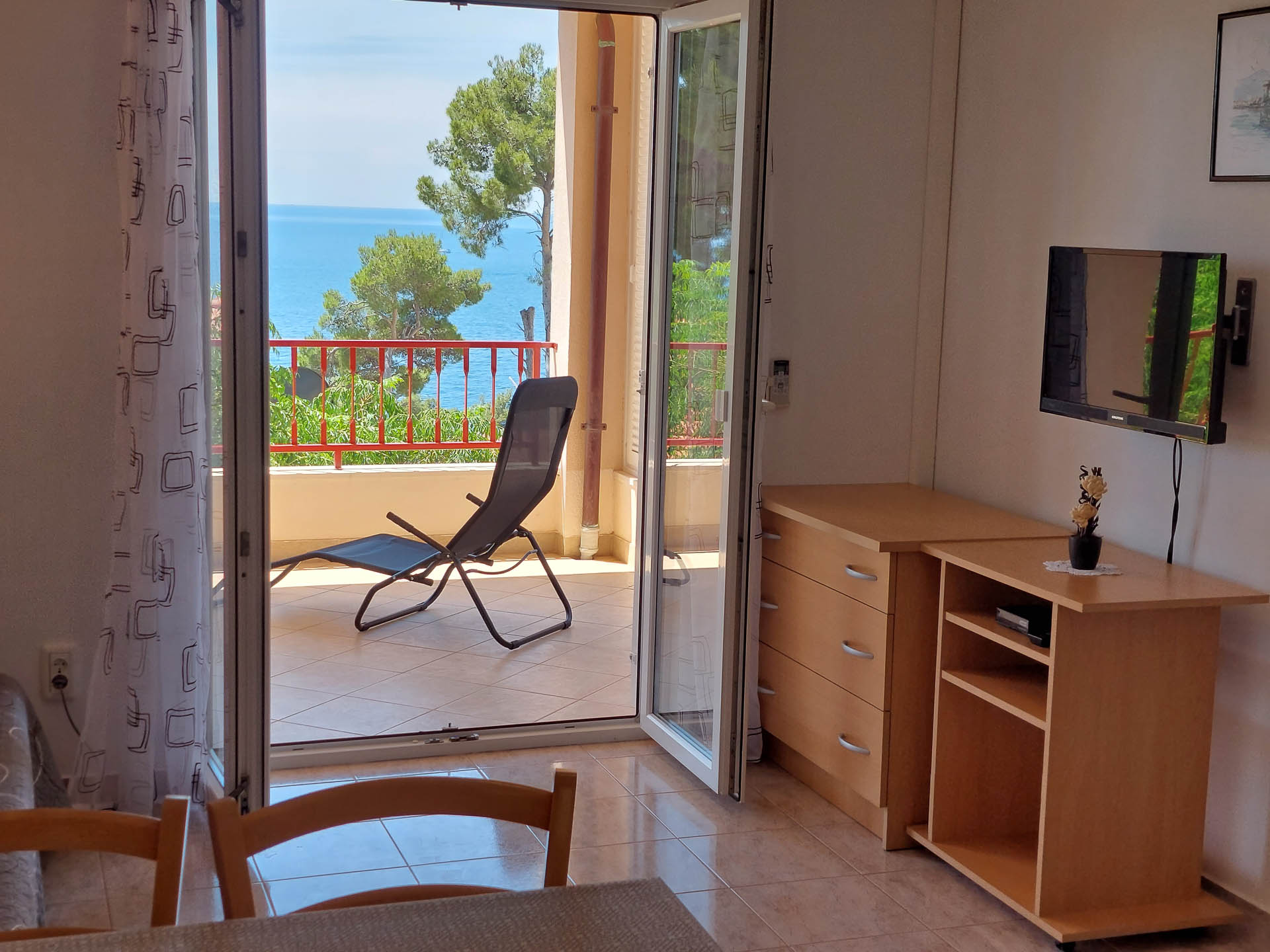 Apartment A2 is on the 2. floor. It consists of one triple bedroom, a living room and a kitchen with adjoining dining area and a terrace of about 20 m2. In the living area there is a sofa bed. From all the windows and the terrace there is a beautiful view of the sea.