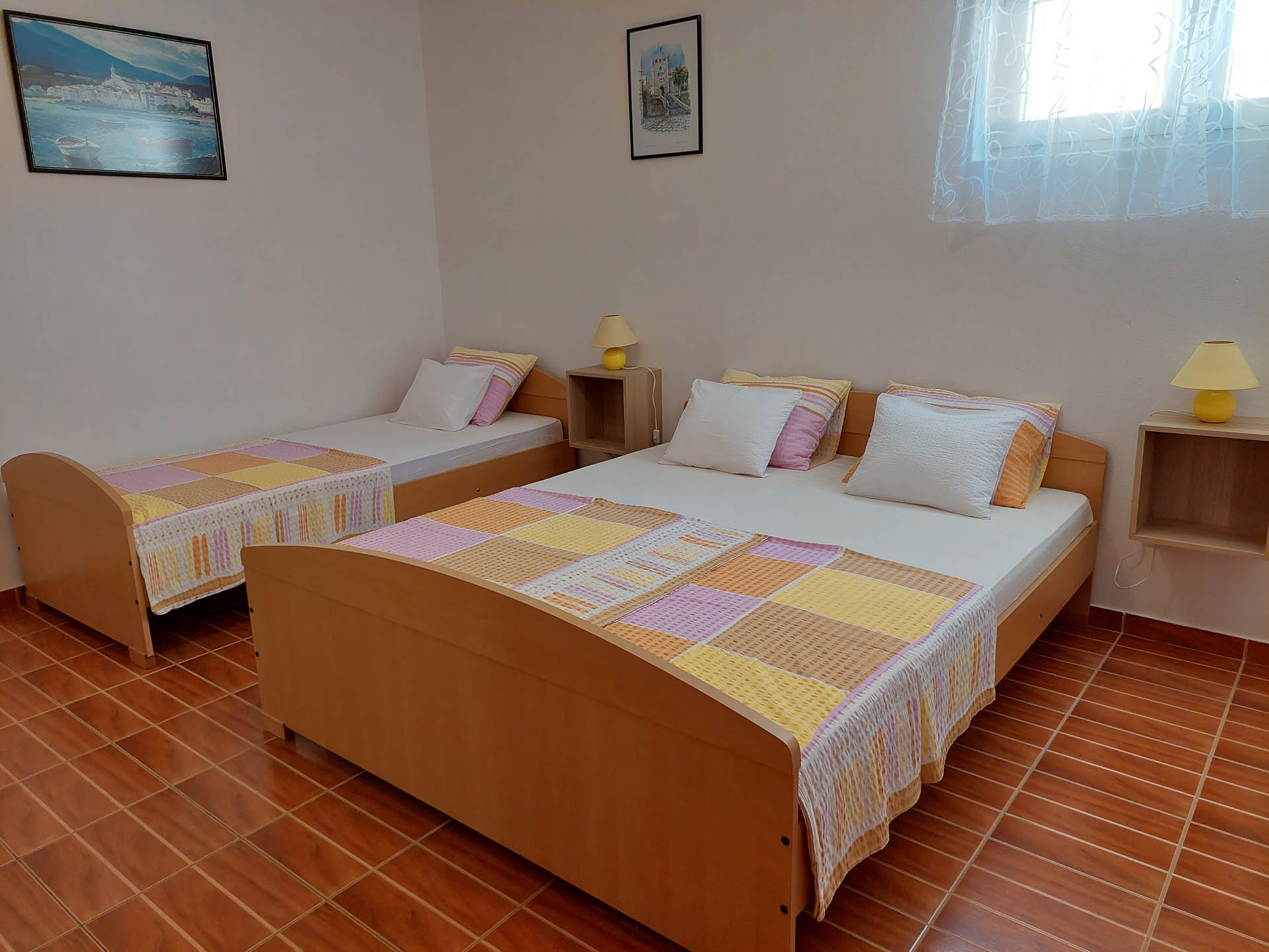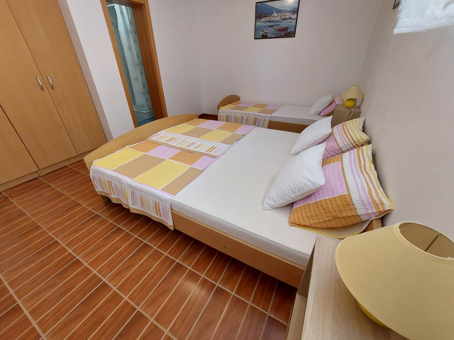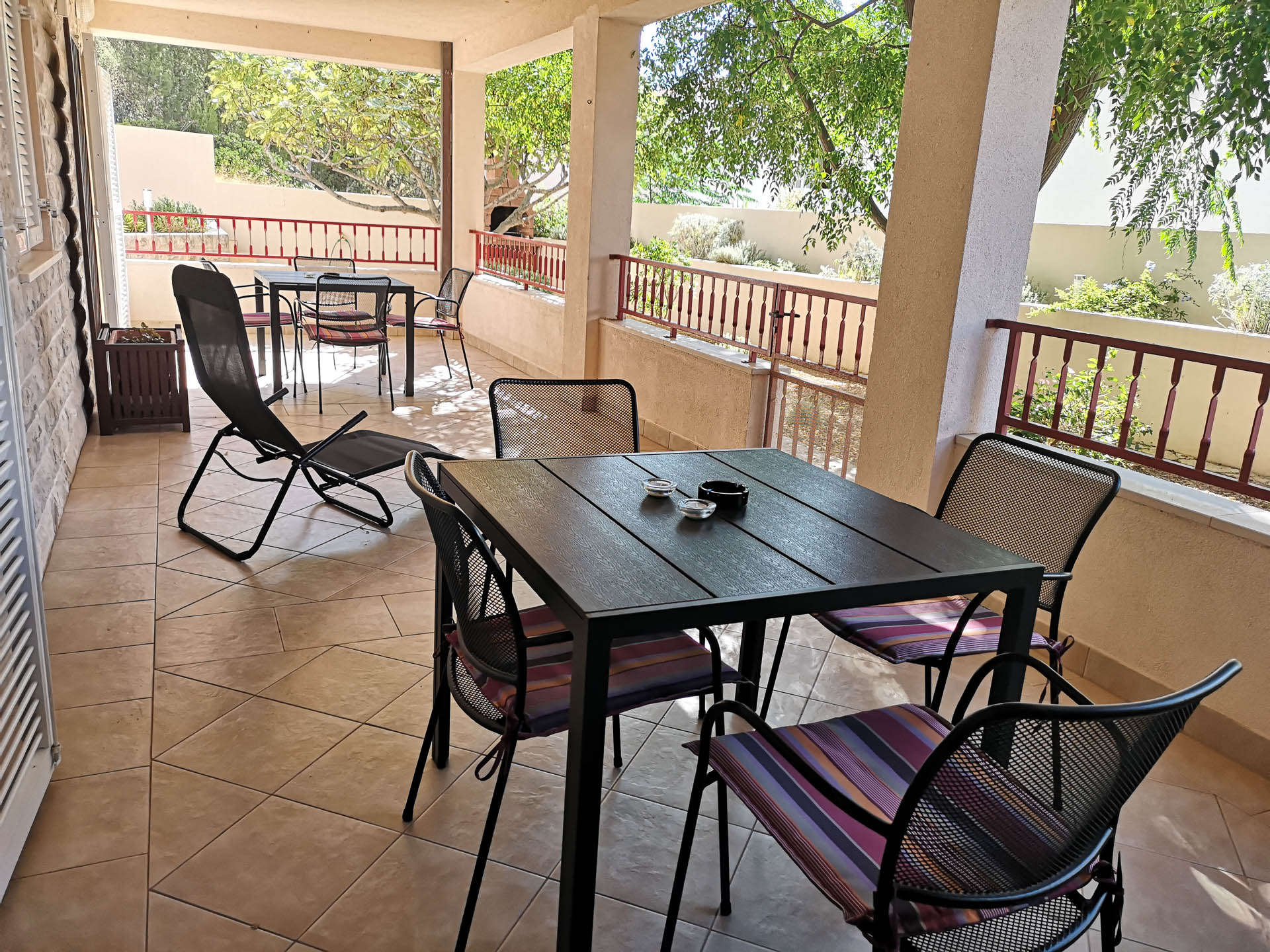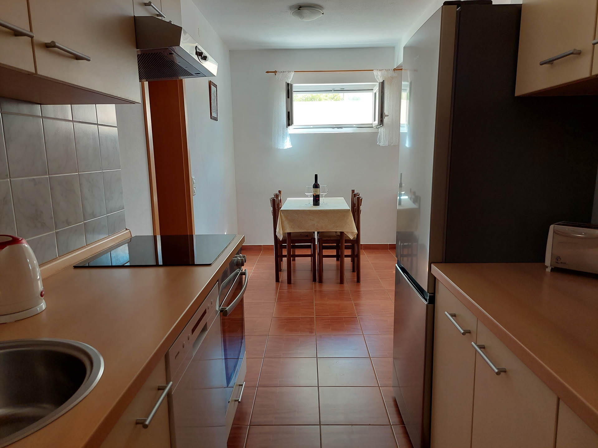 Apartment A4 is on the ground floor and consists of one triple bedroom, a living room and a kitchen with adjoining dining area and a terrace of about 11 m2. In the living area there is a sofa bed. The terrace is surraunded by Mediterranean garden full of lavander and rosemary plants.